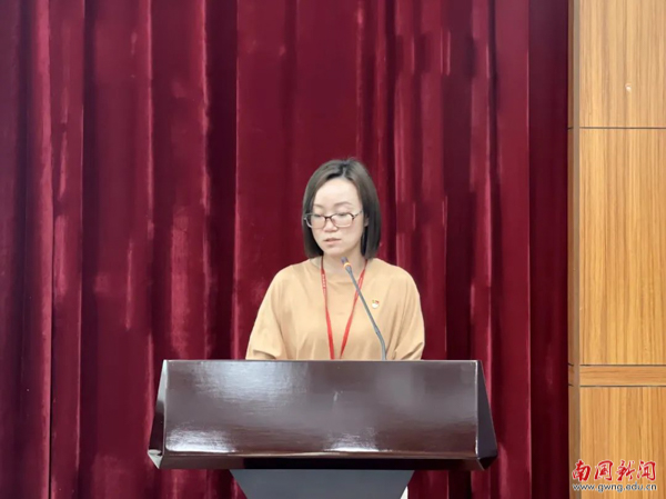郭婷在讲话中总结道,王院长的思政课以习近平总书记在党的十九届六中全会重要讲话和全会《决议》为依据,带领师生们学习领会全会精神,深刻认识党的百年奋斗初心使命,更以百年来革命烈士诗歌典范为佐证,以文学的角度分析讲解,使课程不仅仅是一堂思想政治教育课,更是一堂美的诗文阅读分享课,还是一堂生活的红色文化传承课。(记者/肖小红 摄影/卢晓晴 )
